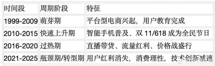 按康波周期框架来看,电商行业可能经历了如下演进过程(该分类为行业观察性判断):