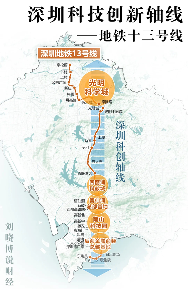 而地铁13号线作为贯穿南北的科技轴线,不仅将光明与南山高新园、深圳湾超总等核心创新节点无缝串联,其已通车的北延段更对接东莞5号线,让深莞的人才、资本和创新流动再无阻隔。
