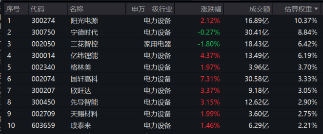 【电池50ETF(159796)标的指数前十成分股涨跌幅】