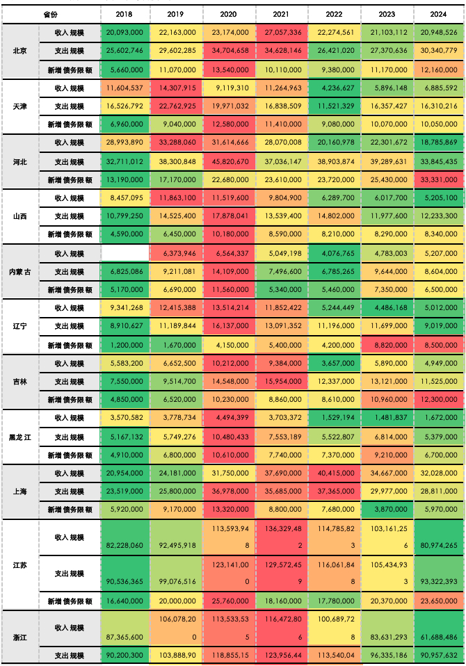 从数据看,东部沿海省份普遍具备较强的财政自给能力,如上海、北京、浙江、江苏等地长期维持在较高水平。这些地区税基广、经济活跃,税收在财政收入中占比较高,使得其预算灵活性强、抗风险能力高、偿债能力较强。