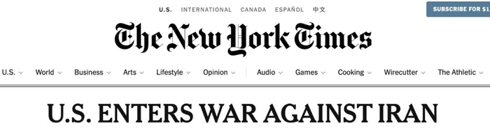 ||图为《纽约时报》网站首页新闻专题:“美国对伊朗开战”