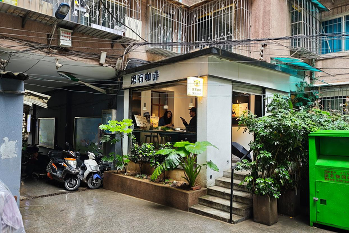 藏在居民楼内的“黑石咖啡”。新华社记者 欧东衢 摄门口的街面上卖着热辣滚烫的各类小吃,街后的老旧居民楼里,一家咖啡店的温暖灯光洒满了地面。这就是贵阳社区咖啡店的代表——“黑石咖啡”。