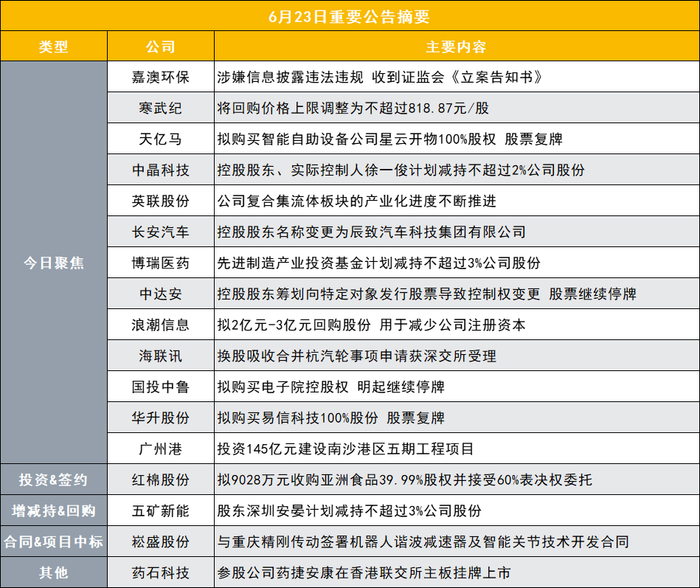 突发!这家公司涉嫌信息披露违法违规遭证监会立案|盘后公告集锦