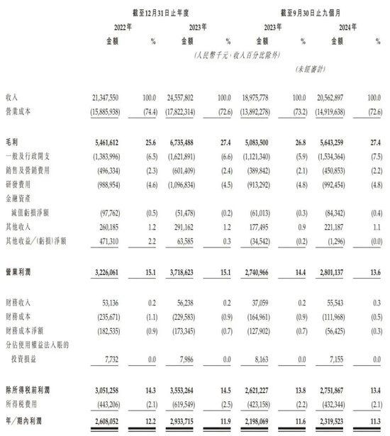 招股书显示,三花智控2022年、2023年营收分别为213.48亿元、245.58亿元;经营利润分别为32.26亿元、37.19亿元;期内利润分别为26亿元、29.34亿元;期内利润率分别为12.2%、11.9%。