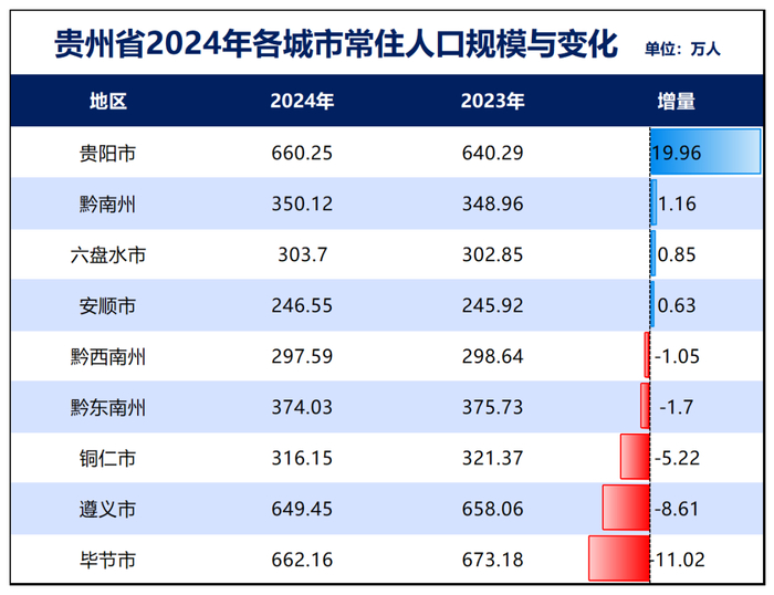 第二,人口增量最多的城市,让人意外,不是深广这类传统的人口吸泵城市,也不是杭州、武汉、西安、成都、长沙这类强二线城市,而是地处西南的弱省会贵阳。