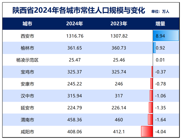 陕西:陕西去年增加了1万人,下辖的10个城市8个公布了数据,公布数据的8个城市6个减少,占比过半。