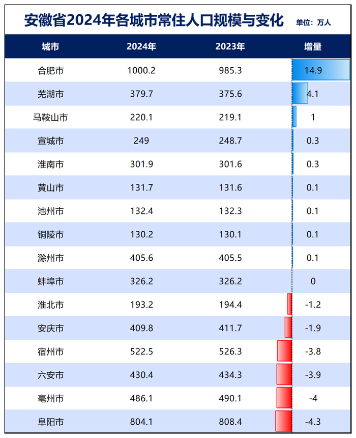 安徽:安徽去年增加了2万人,下辖的16个城市,6个减少,占比37.5%。