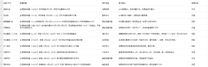 6月17—6月23日电商行业舆情榜单: