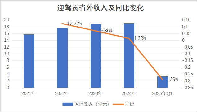 财报显示,2024年迎驾贡省外市场收入同比增长仅1.3%,2025年Q1该部分收入同比下滑超过29%。