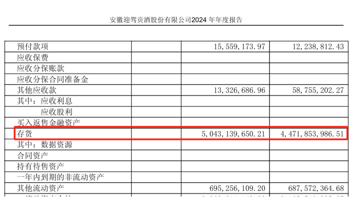 2024年年报显示,迎驾贡的存货金额为50.43亿元,较2023年同比增长12.77%,导致存货周转天数从2023年的583.3天上升至619.4天。