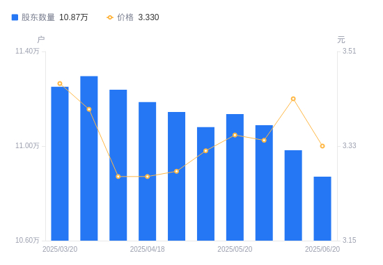 近一年(2024年6月20日至2025年6月20日),陕国投AA股股东户数从8.56万户,增加至10.87万户,增幅27.00%,区间股价上涨19.78%。