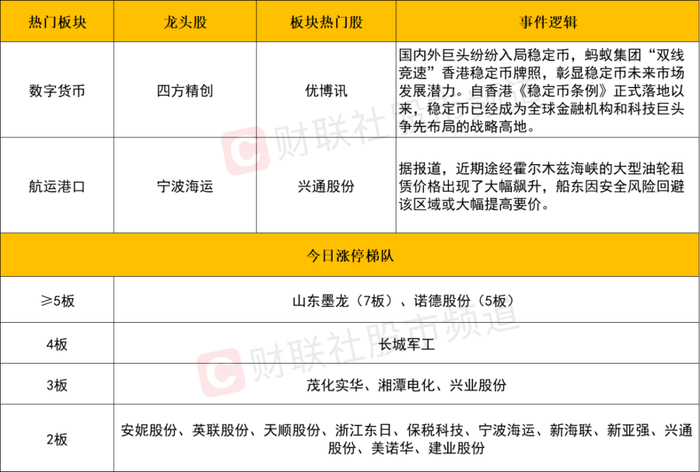 热门板块:稳定币、港口航运