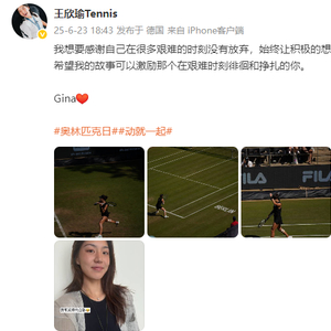 北京时间今天(23日)傍晚,刚刚在WTA500柏林站闯入职业生涯首个巡回赛决赛的王欣瑜,在个人社交媒体发文表示,感谢自己在很多艰难的时刻没有放弃,始终让积极的想法战胜那些怀疑。