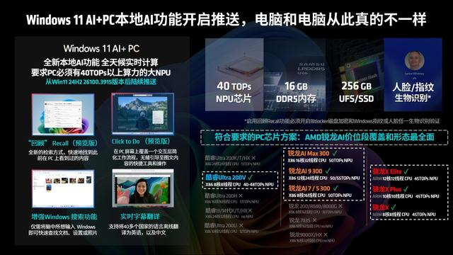 在整个PC行业迈入AI PC时代之后,虽然在硬件层面,像AMD这样的芯片厂商已经为AI PC打造了高算力芯片,但在系统层面却尚未充分体现出AI时代的不同。因此对于Windows 11来说,如何将AI融入系统层面,从而让AI PC真正从硬件到系统再到软件都得到进化,就成为了摆在微软面前的问题。