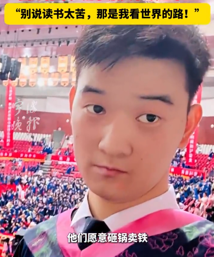 3、脑瘫男孩宁波大学硕士毕业近日,1997年出生的脑瘫男孩尹龙宁波大学硕士毕业。小学时他需要父母签保证书才能入学,凭借不服输的精神,一路苦学拿到了硕士学位证书。他说:“别说读书太苦,那是我看世界的路!”(宁波晚报)