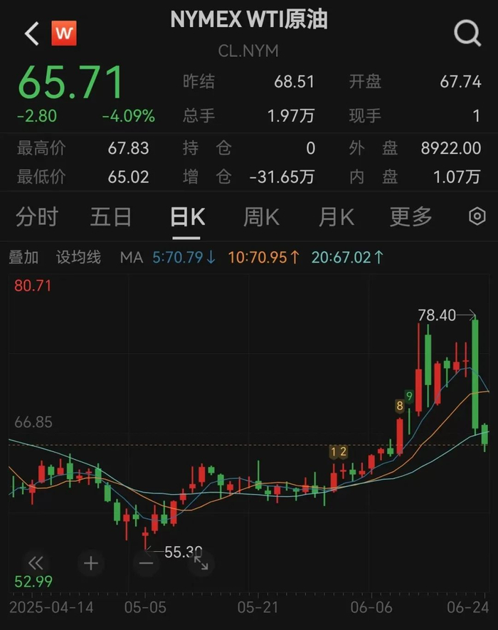 受此影响,原油期货大跌,黄金走低。截至24日7:00,WTI原油跌超4%,现货黄金跌0.34%。