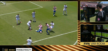 上半场比赛,双方均无建树。第45分钟,马竞传球到禁区内,索尔洛特头球点下来,阿尔瓦雷斯禁区内拼抢时被踢了一下倒在地上,随后VAR介入,主裁判观看视频回放确认没有点球。