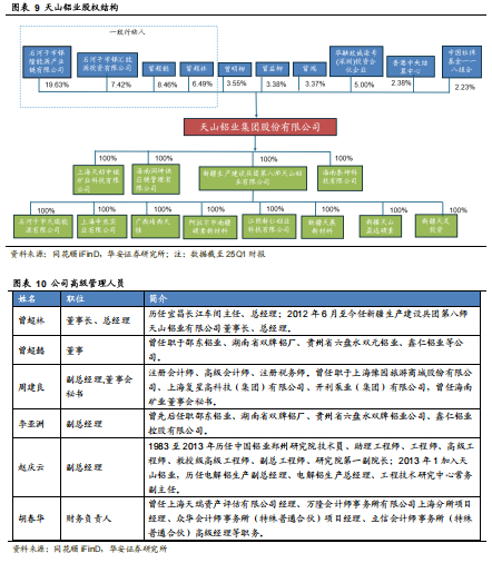 公司股权集中,曾氏兄弟为实际控制人。天山铝业是民营企业,实际控制人为 董事长兼总经理曾超林先生和董事曾超懿先生,截至2024年末,曾超懿和曾超林直 接合计持有天山铝业总股本的14.95%,并通过控股锦隆能源和锦汇能源间接持有总 股本的27.05%,合计持有天山铝业总股本的42%。