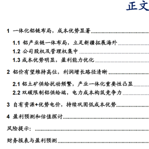 本报告摘自华安证券2025年6月19日已发布的《【华安证券·工业金属】天山铝业(002532):铝链一体全球布局,成本优势显著》,具体分析内容请详见报告。若因对报告的摘编等产生歧义,应以报告发布当日的完整内容为准。