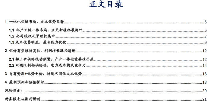 铝需求不及预期;上游资源供给波动;能源成本大幅波动;项目建设进度不及预期等