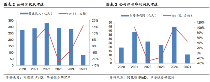 铝价回升,公司利润延续增长。2024年以来电解铝价格回升,同时氧化铝价格上涨提供支撑,带动公司利润提升,2024年公司收入280.89亿元(同比-3.06%,主要是贸易部分减少),归母净利润44.55亿元(同比+102.03%),25Q1延续增长,收入/归母净利润同比分别+16.12%/+46.99%。