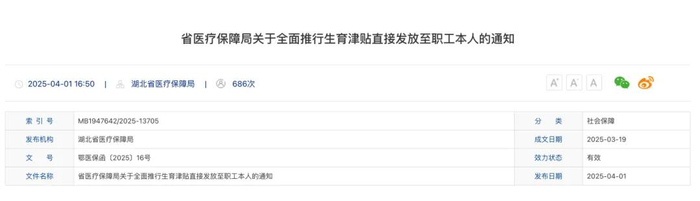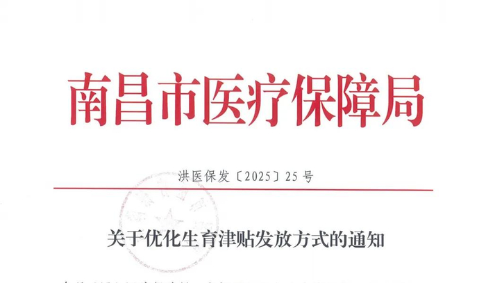 6月18日,南昌市医保局发布文件,宣布2025年7月1日,生育津贴一次性发放至员工本人账户。