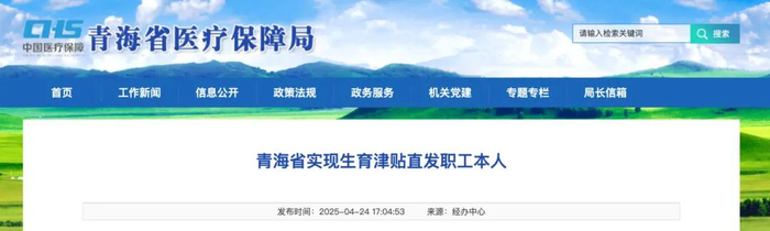 青海省医疗保障局印发《关于调整生育保险待遇申领支付方式的通知》,实现直接将生育津贴发放至参保女职工个人,发放周期压缩至8个工作日。