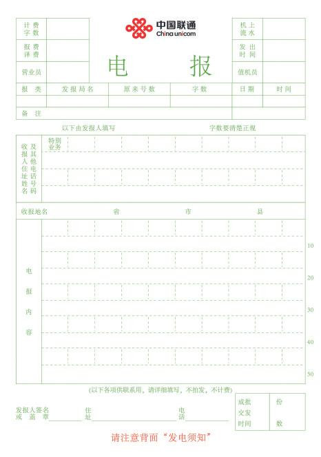 电报窗口提供的电报纸。
