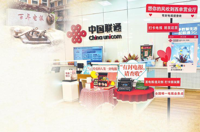 走进北京联通西单营业厅,经过布满电报主题的冰箱贴、书签等文创产品的打卡区,记者来到了全国最后一个电报窗口,桌上摆放着厚厚的电报纸和一张填写示例。目前发电报的收费价格仍为0.14元/字,数字和符号统一加4个字符,可发往北京市、广州市、合肥市、山东全省以及河北全省,北京同城内的电报一般2~3天即可收到。5月初,受杭州电报业务服务停止的影响,来发电报的人数激增,其中年轻人、老年人都有,每日可发出一二百份电报。