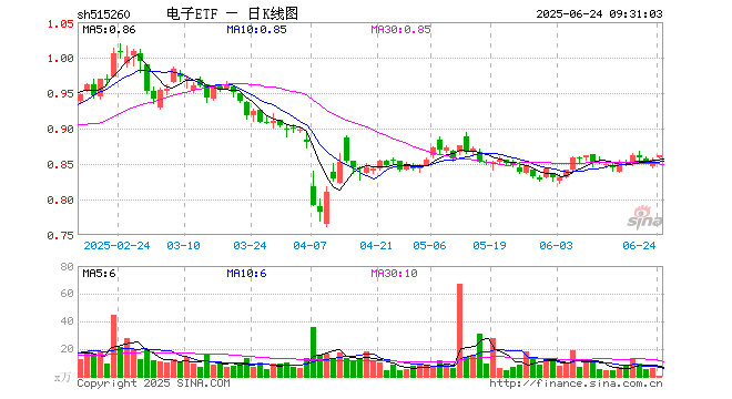 6月24日,电子ETF(515260)开盘涨0.47%,报0.859元。电子ETF(515260)重仓股方面,立讯精密开盘涨0.33%,中芯国际涨0.00%,京东方A涨0.00%,北方华创跌0.36%,海光信息涨0.31%,寒武纪涨1.09%,海康威视涨0.22%,韦尔股份涨0.28%,中科曙光涨0.35%,澜起科技涨1.08%。