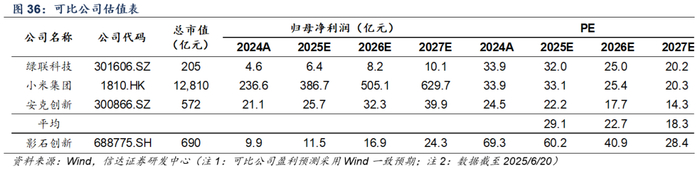公司主要从事智能影像设备行业,我们选择消费电子龙头绿联科技、小米集团、安克创新作为可比公司,平均PE 2025E约29.1X。影石创新作为智能影像设备行业稀缺标的,兼具“科技+消费”属性,以核心技术带动产品创新,技术研发和品牌营销壁垒显著,充分享受市场扩容红利,新系列推出亦有望带来进一步增长,首次覆盖给予“增持”评级。