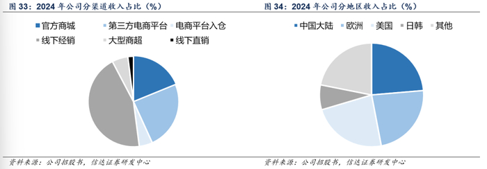 公司业务结构具有“大单品策略+全渠道布局+全球化扩张”的特征,产品端以各系列大单品为主树立品牌&技术标杆,渠道端则全面覆盖线上线下与国内外市场,触达以中国大陆及海外发达国家市场为主的核心消费者。