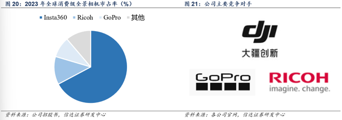 公司作为新晋智能影像设备品牌,凭借技术创新不断提升份额,2023年全景相机市占率全球第一、运动相机市占率全球第二,具备明显领先优势。