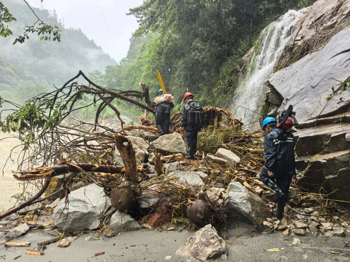 逆行驰援,铁肩担当,面对山洪暴雨导致的道路堵塞,中国中铁、中国铁建员工们用双手为后续救援抢险清出一条“生命通道”。
