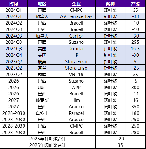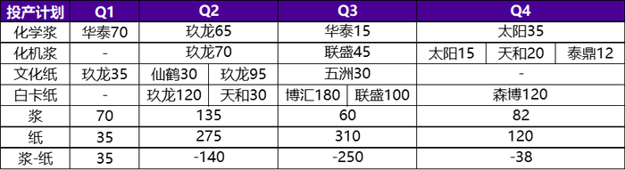图8 国内外商品浆产能投放计划与商品浆平衡表(单位:万吨)