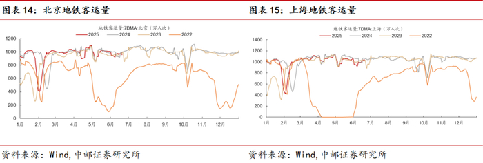 (1)一线城市地铁客运量需求有所分化