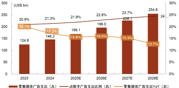 注:预测日期为2025年3月 资料来源:eMarketer,中金公司研究部