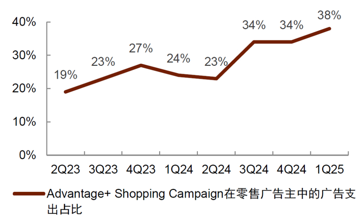 图表13:Advantage+ Shopping Campaign渗透率稳步提升,1Q25已达38%
