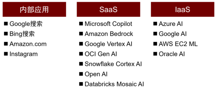 ► 云迁移:在生成式AI出现之前,企业虽然也在积极云化转型,但AI的渗透加速了这一进程,叠加大公司采取多云策略,共同支撑云厂商业绩高增。此外,企业在调用云厂商承载的大模型API时,也会拉动对云厂商的非AI业务,例如CPU计算、存储、数据库等需求,AI与非AI业务联动催化企业云端渗透率提升。