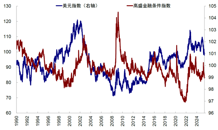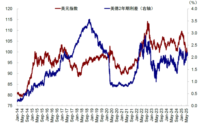 但实际上,市场在讨论这一问题时存在两个常见的误区:一是直接将美元走弱与“去美元化”画等号。“去美元化”直接体现为美元走弱不假,但并非美元走弱就是去美元的宏大叙事所致;二是将美元弱和美股跌画等号。美元和美股的关系不是单向和线性的,多数时间弱美元反而有利美股。“对等关税”至今,尽管美元低迷、美股却逼近新高也说明了这一点。实际上,基于信用周期的走向,我们认为四季度美元小幅走强,美股再度跑赢的可能性值得重视中提示。