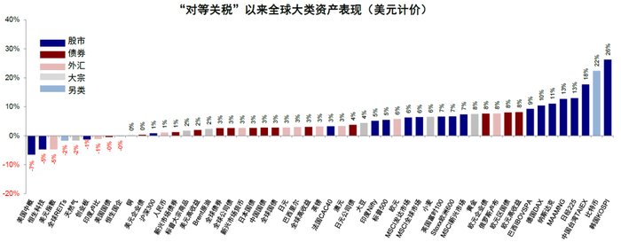 图表1:“对等关税”至今,美股维持超预期的强势,在全球资产中表现领先