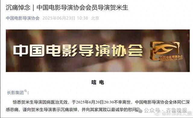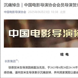 6月22日,中国电影导演协会向长影集团发唁电称,惊悉贺米生导演因病医治无效,于2025年6月20日晚不幸离世,中国电影导演协会全体同仁深感悲痛,谨向贺米生导演表示沉痛哀悼,并向其家属致以最诚挚的慰问。