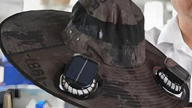 这款帽子是2025年推出的专利产品,檐上装了在小风扇上的遮阳帽,还有太阳能板持续供电。图片来源:好看视频