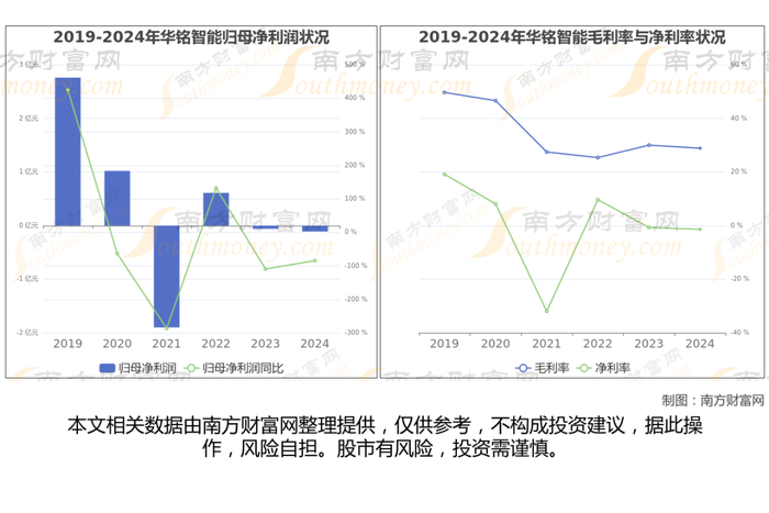 华铭智能2024年数据显示,公司2024年营业收入6.26亿,同比增长4.22%,近五年复合年增长率-15.87%;净利润-1074.63万,近五年复合年增长率-11.29%。公司业务结构、营业收入、归母净利润、毛利率与净利率情况如下图: