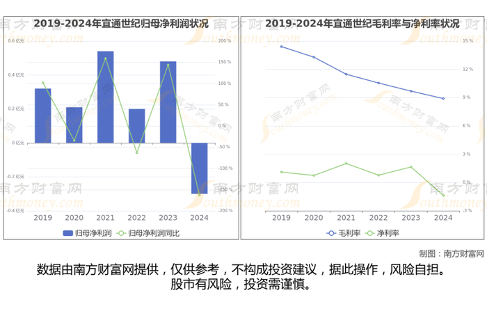 2024年宜通世纪公司营业总收入25.02亿,同比增长-5.93%,近五年复合增长率为3.1%;净利润为-3034.99万,近五年复合增长率为-9.54%。公司业务结构、营业收入、归母净利润、毛利率与净利率情况如下图: