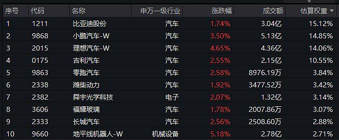 【$港股汽车ETF(159210)标的指数前十大成分股】