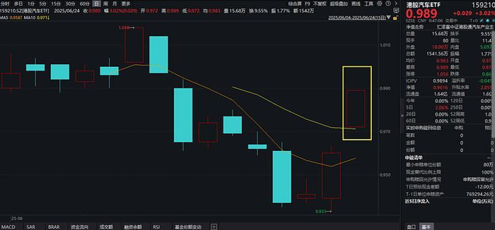 6月24日,智能网约车、无人驾驶概念盘初活跃,$港股汽车ETF(159210)跳空高开,一度涨3.02%,现涨超2%!