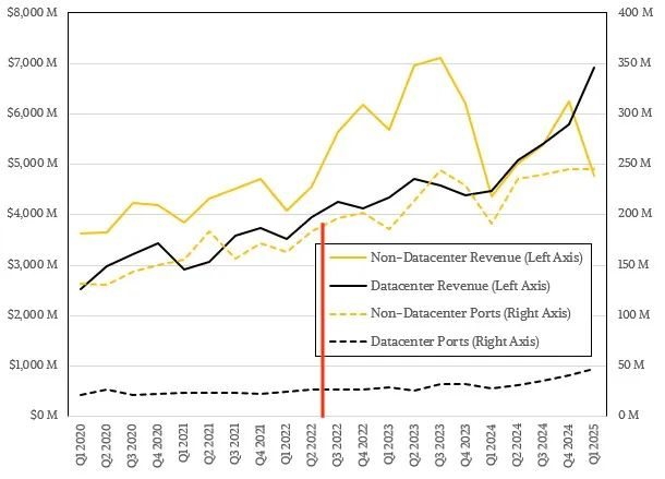 以下是数据中心以太网销售的更长趋势线,供您参考: