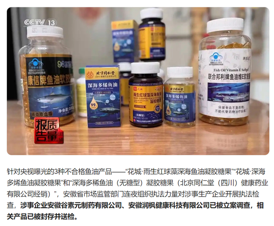 近日,鱼油产品不合格事件对同仁堂的品牌形象造成一定不利困扰,央视曝光的3种不合格鱼油产品——“花城·雨生红球藻深海鱼油凝胶糖果”“花城·深海多烯鱼油凝胶糖果”和“深海多稀鱼油(无糖型)凝胶糖果,系北京同仁堂(四川)健康药业有限公司经销。