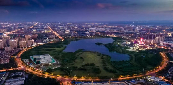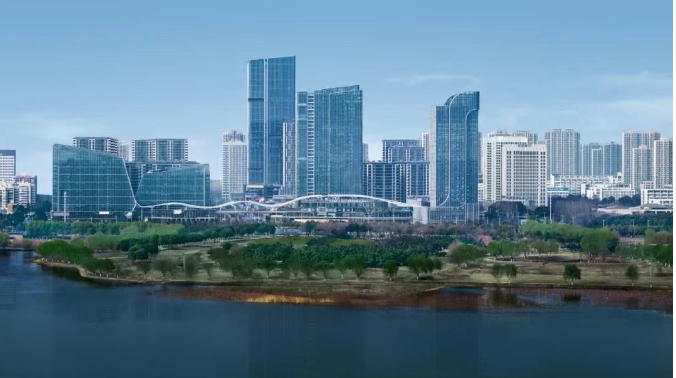 这是一座城市难以复制的中心湖景商务封面,也承载这座城市及新区的向上发展见证。